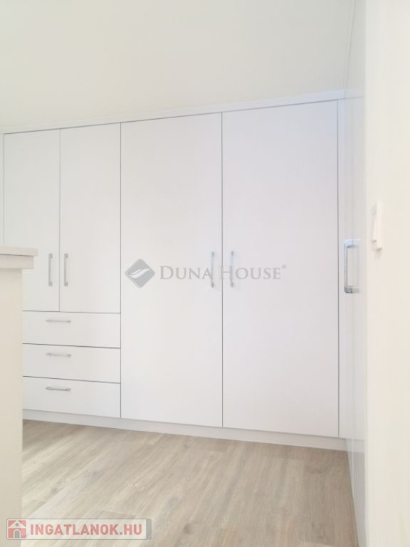 A két lakrész egy praktikusan kialakított, az ingatlan részét képező zárt előtérből nyílik, ahol egy hatalmas beépített szekrény is megtalálható, kulturált, rendezett tárolási lehetőséget biztosítva az ingatlant használók számára, akár kerékpár, roller biztonságos parkolására is alkalmas. A helyiség mosókonyhaként is hasznosítható, melyhez 1-1 mosógépkiállás és mosógép is telepítésre került.