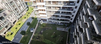 A lakás a 9. emeleten található, belső kertre néz, és panorámás kilátást kínál a Budai-hegyekre.