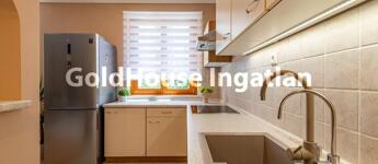 A konyha teljesen gépesített, modern készülékekkel (kerámia főzőlap, villanysütő, szagelszívó, hűtő, mosogatógép).