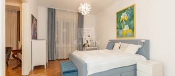 A felújított eredeti parketta, a magas belmagasság és a klasszikus részletek elegáns polgári hangulatot teremtenek, amelyet a modern kényelmi elemek (pl. klíma) egészítenek ki. Az ingatlan teljes körűen felújított, azonnal költözhető.