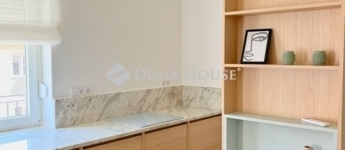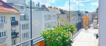 Újlipótvárosban, a Raoul Wallenberg utcában eladó egy 2024-ben teljeskörűen felújított, hatodik emeleti, 67 m²-es lakás 24 m²-es tetőterasszal a Phönix-házban.A lakás belsőépítész tervei alapján került felújításra és átalakításra. A nappali és a konyha-étkező egy tágas légtérben található, dupla erkélyajtóval a teraszra. A hálószobából szintén van kijárat a teraszra. Külön vendég WC helyiség került kialakításra.Az ingatlan főbb jellemzői: 24 m²-es, dél-keleti fekvésű tetőterasz panorámával; légkondicionálás a nappaliban és a hálószobában; egyedi beépített bútorok; BOSCH konyhai gépek (sütő, főzőlap, beépített mikró, mosogatógép, hűtő fagyasztóval); eredeti fa parketta; magas minőségű burkolatok; felújított és szigetelt tetőterasz; redőnyök; biztonsági bejárati ajtó; padlófűtés a hidegburkolatos helyiségekben.A társasház jó anyagi körülmények között van, jelenleg is folyamatban van a teljes elektromos hálózat felújítása. A lépcsőház és a lift korábban felújításra került.Az ár a teljes berendezést, bútorzatot és a gépeket tartalmazza.