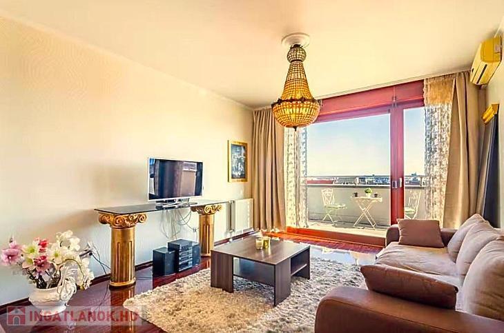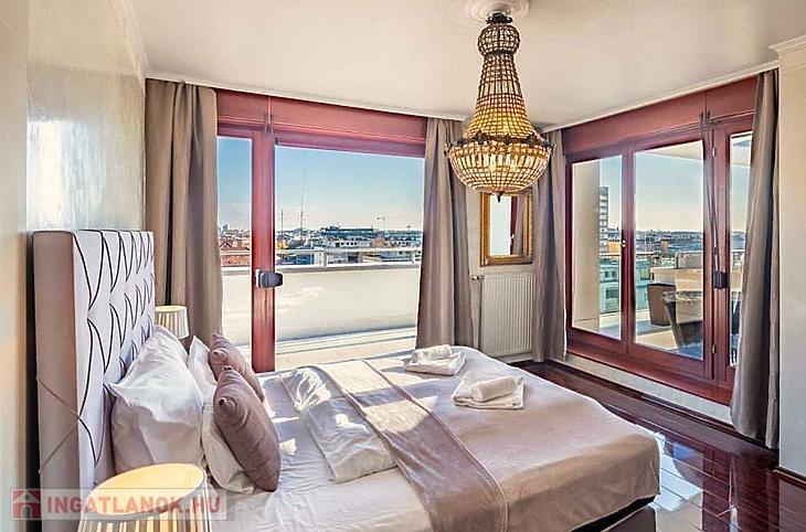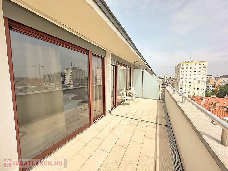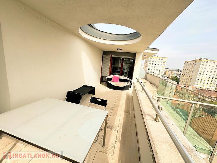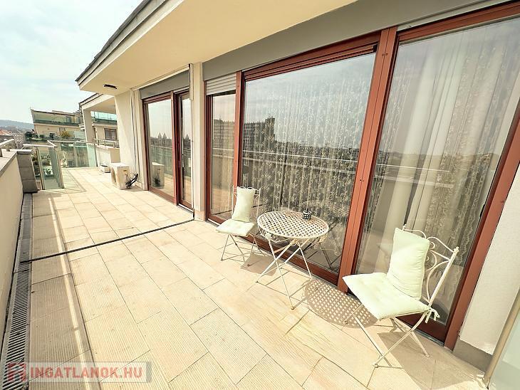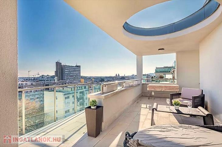 Eladó a Római Kertben (Visegrádi utcában, ) egy különleges Penthouse lakás, amelyet az örök panoráma és a kivételes adottságok tesznek igazán egyedivé. A lakás legnagyobb értéke a 47 nm-es tágas, részben fedett terasz, amely tökéletes helyszíne lehet pihenésnek, kikapcsolódásnak vagy akár baráti összejöveteleknek, miközben a város látványát csodálhatjuk. A felső szinten elhelyezkedő ingatlan 53 nm-es, kétszobás, amerikai konyhás világos, kettős tájolásának köszönhetően minden helyisége természetes fényt kap., A liftes, újépítésű társasházban található ingatlan így nemcsak kényelmes, hanem hosszú távon is értékálló választás. A lakók számára pihenőkert és játszótér is rendelkezésre áll a belső udvarban. Az ingatlanhoz egy alagsori parkolóhely is tartozik, ami 15 Millió Forintért megvásárolható. Elhelyezkedés szempontjából: néhány perc sétára található a Duna-part, Margit-sziget, M3-as metró és a Westend Bevásárlóközpont.