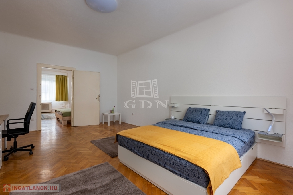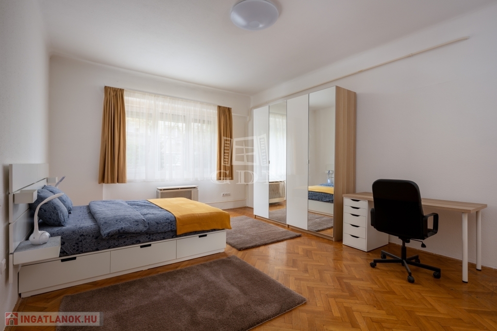 XIV. kerület központi elhelyezkedésű részén, kötött és szabadpályás tömegközlekedési eszközök, üzletek, közintézmények és egyéb szolgáltatások gyűrűjében, kis lakásszámú, rendezett állapotú, liftes társasházban, eladásra kínálok egy 81 m2-es, ablakos konyhás, jelenleg két külön és egymásból is nyíló szobás (könnyen 3 szobássá alakítható) műanyag-redőnyös nyílászárókkal szerelt, klimatizált lakást.