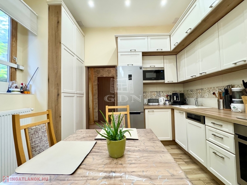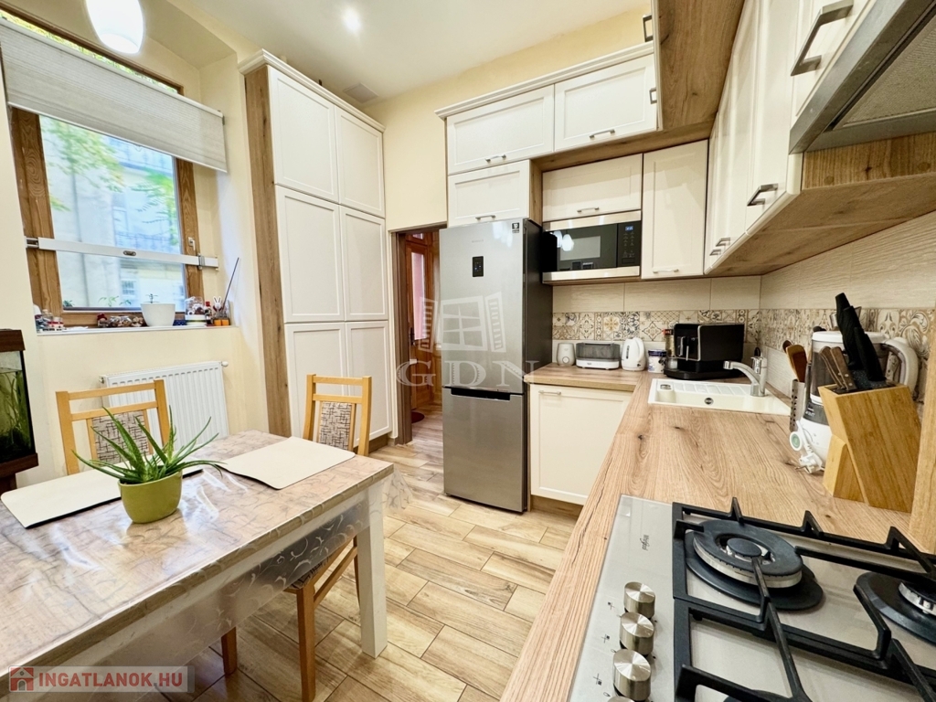 XIV. kerületben, Istvánmező városrészben, karnyújtásnyira a Városligettől, kitűnő közlekedés és ellátottság mellett, rendezett anyagi helyzetű folyamatosan karbantartott, 1910-es években épült, 12 lakásos társasházban, magasföldszinti, 76 nm-es, 3 szobás, étkező konyhás, kamrás, gardrób szobás, K-NY-i fekvésű, alacsony fenntartású, (közös költség 27,500 Ft/hó, gáz átalány 9.300 Ft/hó)), kombinált gázcirkó fűtésű, egyedi mérésű, 2020-ban TELJES KÖRŰEN, (elektromos és vízhálózat, fűtéskorszerűsítés, külső-belső nyílászárók, hideg-meleg burkolatok, teljes konyha gépekkel, szaniterek...stb) minőségi anyagok felhasználásával, felújított, klimatizált, CSENDES lakás, beépített, gépesített konyhával, saját 10 m2-es pincetárolóval kulturált lakóközösségű házban eladó!