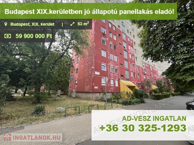 ELADÓ Budapest XIX. kerületének közkedvelt, zöldövezeti részén, az Arany János utcában egy jó állapotú, 9.emeleti, szélső, 53m2-es panellakás, liftes, alacsony fenntartási költségekkel.