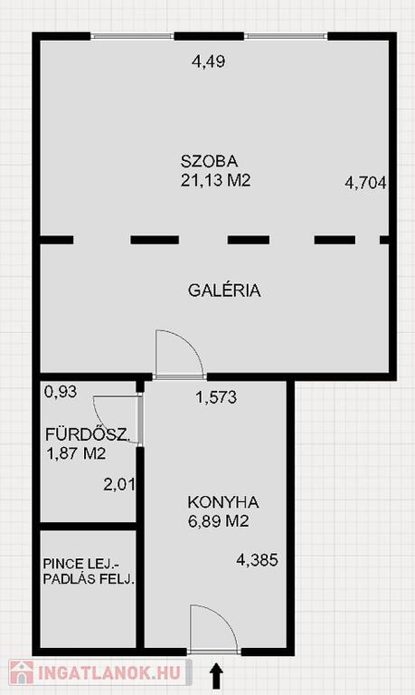 Konyha, galériázott szoba (galéria 13 m2), zuhanyzós fürdőszoba található a lakásban. 2000-es évek elején lett felújítva az ingatlan, ekkor a teljes víz-, villanyhálózat cserélve lett, új műanyag hő-és hangszigetelt nyílászárók lettek beszerelve, illetve új bejárati ajtó.