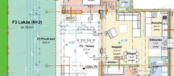 A lakás nettó mérete terasz nélkül: 63 nm.