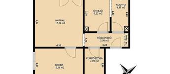 Budapest XV. kerületében, Újpalotán eladó 48 nm-es, másfél szobás, 2. emeleti társasházi téglalakás 8 nm-es loggiával.