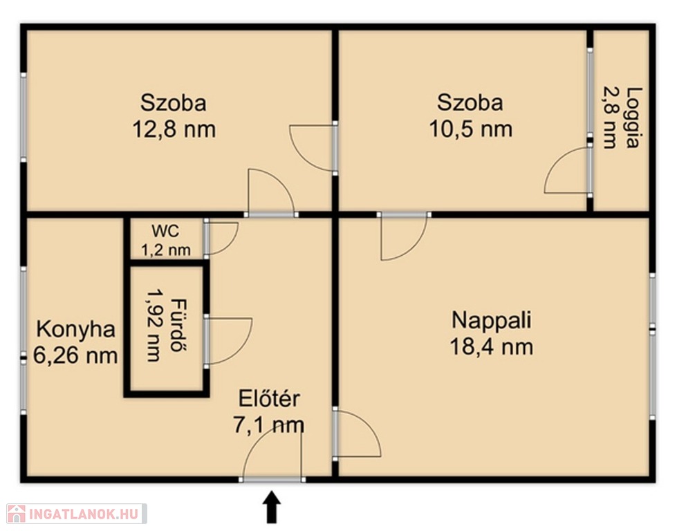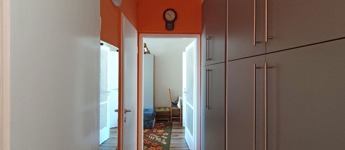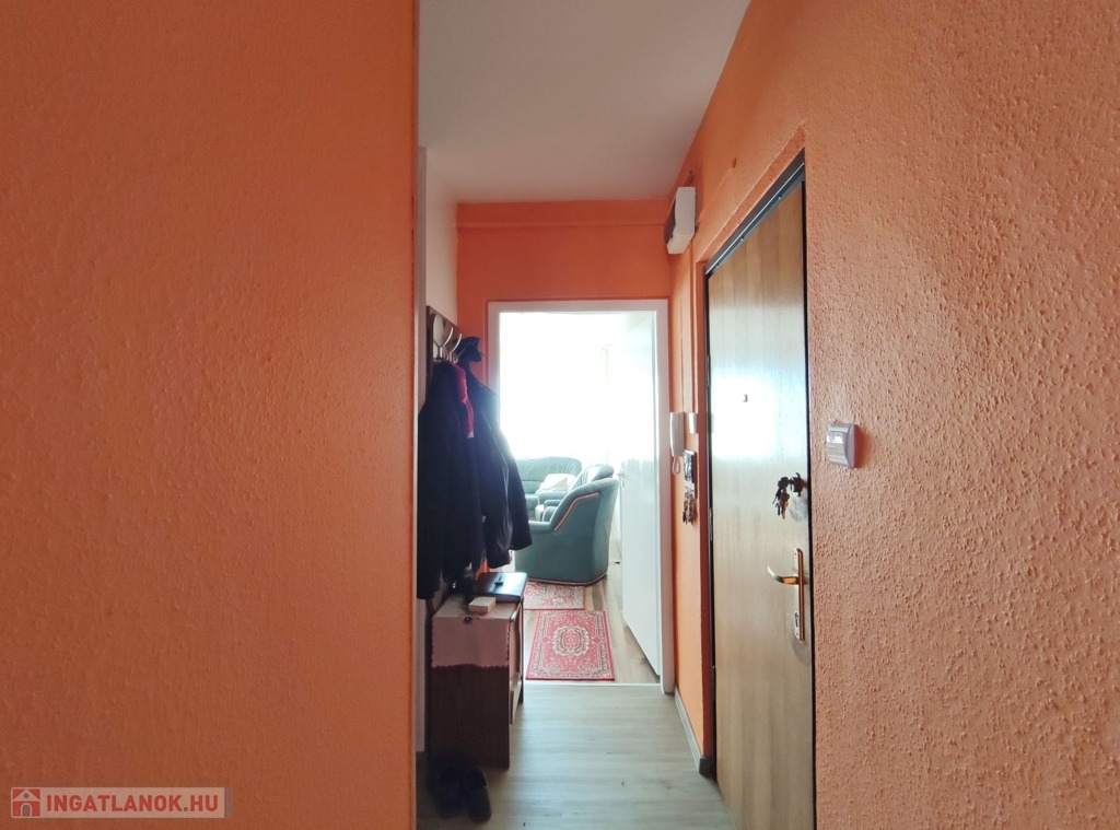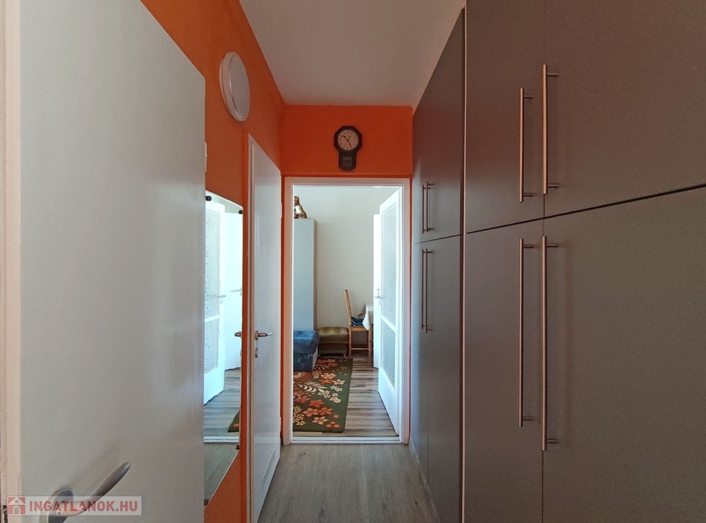 A 12 ponton záródó acél merevítéses biztonsági bejárati ajtón keresztül felújított és szépen karbantartott állapotú, a szobák elrendezését tekintve remek elosztású, délkeleti tájolású, loggiás lakásba érkezünk. A bejárattól az „L” alakú közlekedőben balra találjuk a konyhát, másik irányban bal oldalon a vizes helyiségek, jobb oldalon és szemben pedig a szobák nyílnak meg.