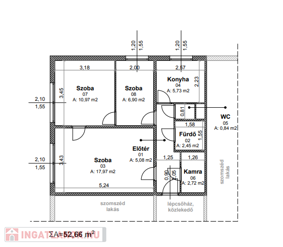 Budapest XV. kerület Páskomliget utcában tulajdonostól eladó 1/1 tulajdonjogú, tehermentes, 53 nm-es 1+2 félszobás lakás, világos lakás.