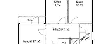 A világos, ablakos fürdőszoba és a praktikus étkezőrész kényelmes mindennapokat biztosítanak. Az eredeti, csiszolható faparketta megőrizte szépségét, a lakás pedig felújítandó állapotú, így új tulajdonosa saját ízlése szerint alakíthatja.