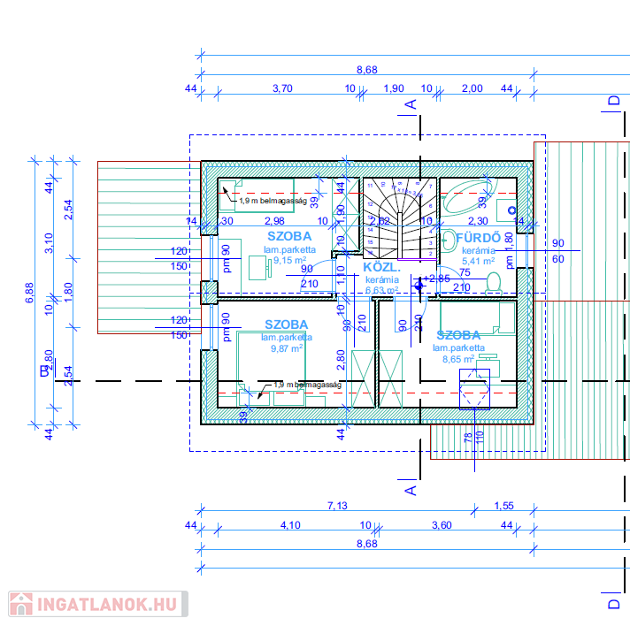 2 fürdőszoba – egyik zuhanyzós, másik káddal