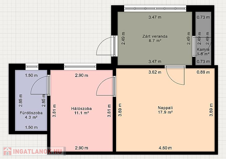 A 44 négyzetméteres, másfél szobás lakás tehermentes, külön helyrajzi számon lévő, rendezett jogi hátterű. Ablakai a csendes, belső udvarra néznek.