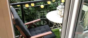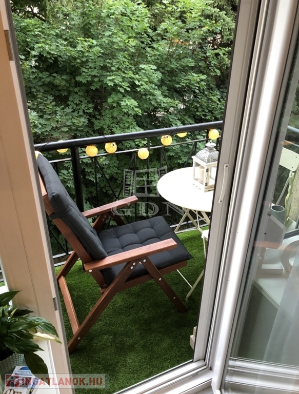 A nappaliból egy erkélyre léphetünk ki, amely zöld, kertre néző kilátást biztosít.