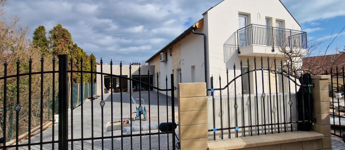 - Az utcafronton terméskőkerítés és automata kapu került elhelyezésre