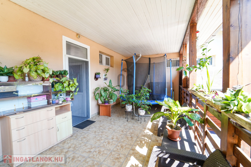 Ez az ingatlan egy 2 lakásos társasház része, amely 2003-ban épült B38-as téglából, monolit betonfödémmel és antracit színű betoncseréppel fedve. A kiváló hőszigetelésnek és az 1 éves Immergas kondenzációs gázkazánnak köszönhetően rendkívül alacsony rezsivel fenntartható. A fűtés gázcirkós, radiátoros hőleadással, a nyári komfortot pedig két inverteres klíma biztosítja.