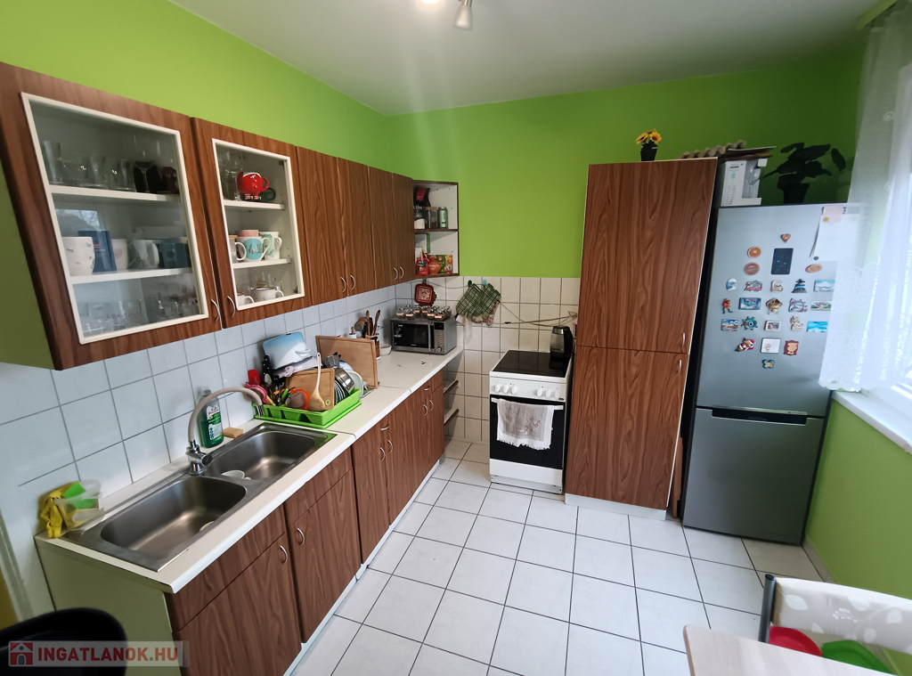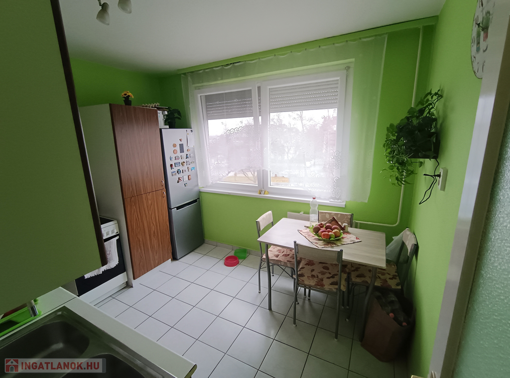 - Helyiségei: előszoba, étkezőkonyha, nappali + 2 külön nyíló szoba, fürdőszoba, WC külön.