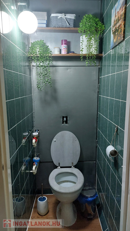 - A fürdőszoba és a WC csempeburkolatára vinyl padló lett ráhelyezve.