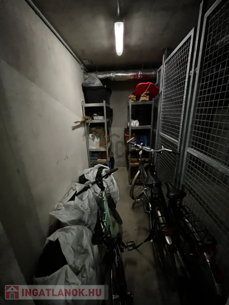 Az ingatlanhoz vásárolható egy nagyméretű teremgarázs parkoló hely, és egy 5 m2 önálló tároló. Ezek ára együttesen 15 Mft.