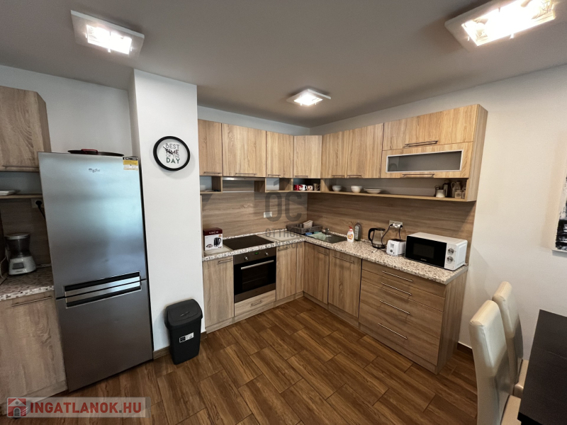 A Debreceni Egyetemtől három perc séta távolságra eladó 61 m2 nappali két hálószobás lakóparki ingatlan, egy rendkívül impozáns 15m2 terasszal.