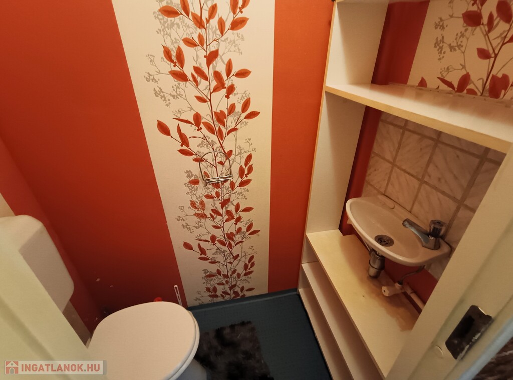 - A fürdőszoba, WC járólappal, a szobák laminált parkettával burkoltak.