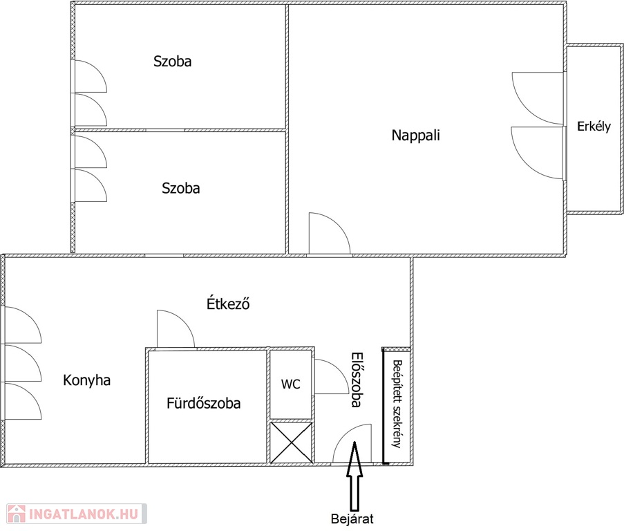 - Az előszobában beépített szekrények találhatók.