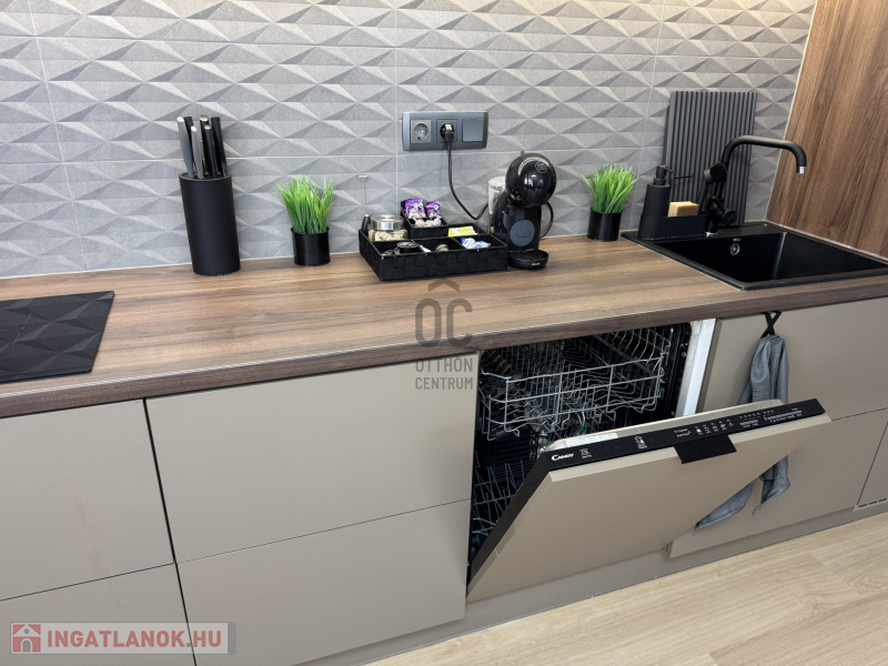 Bútorozott és gépesített: Minőségi bútorokkal és korszerű háztartási gépekkel felszerelt lakás.