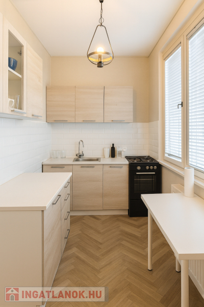 - konyha- étkezője jelenleg egymás melletti külön helyiségben vannak, de összenyitható