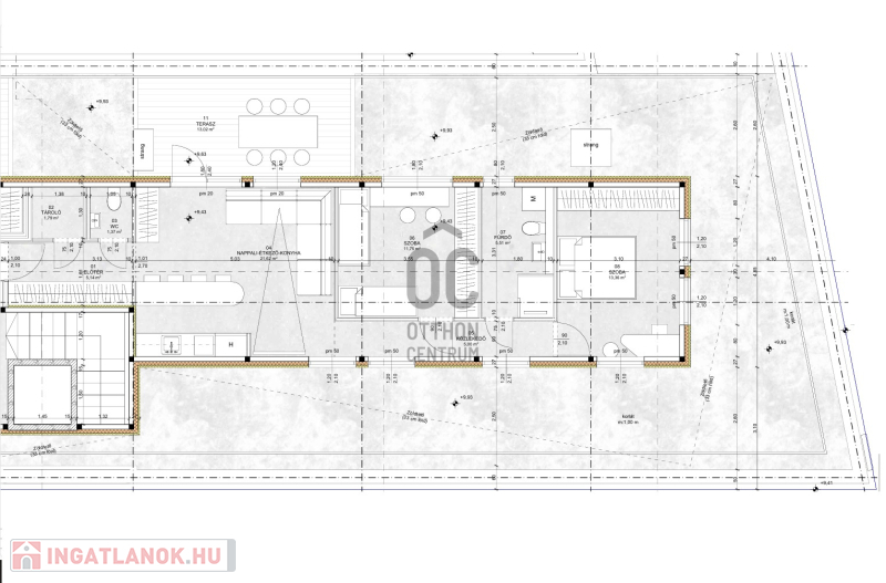 Ez az 3. emeleti penthouse lakás 65,54 nm-es, nappali-étkező-konyha +2 szobás, 13 nm-es terasszal.