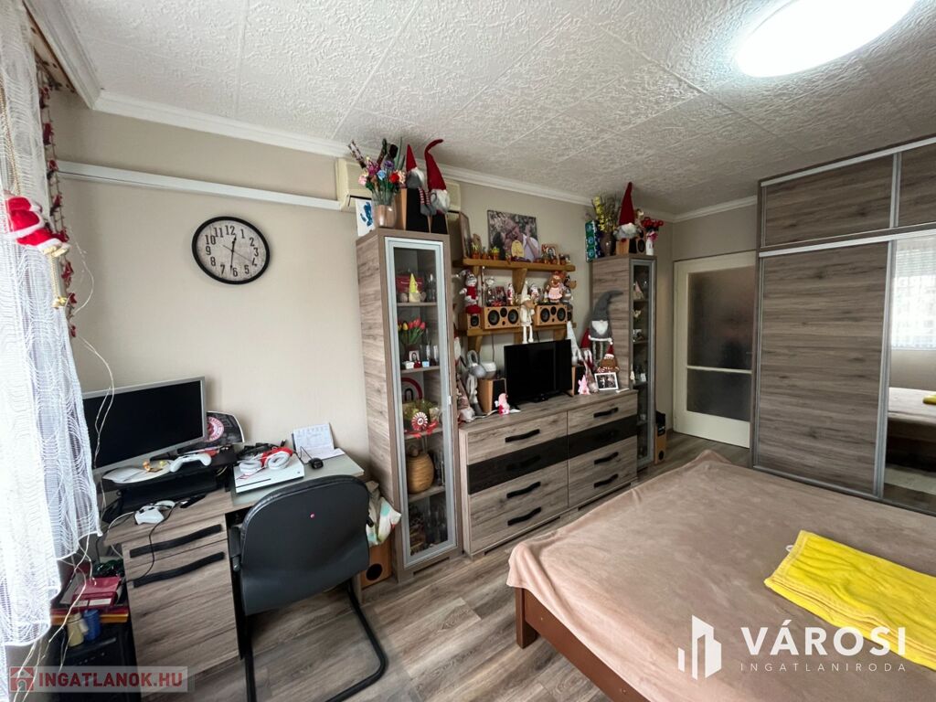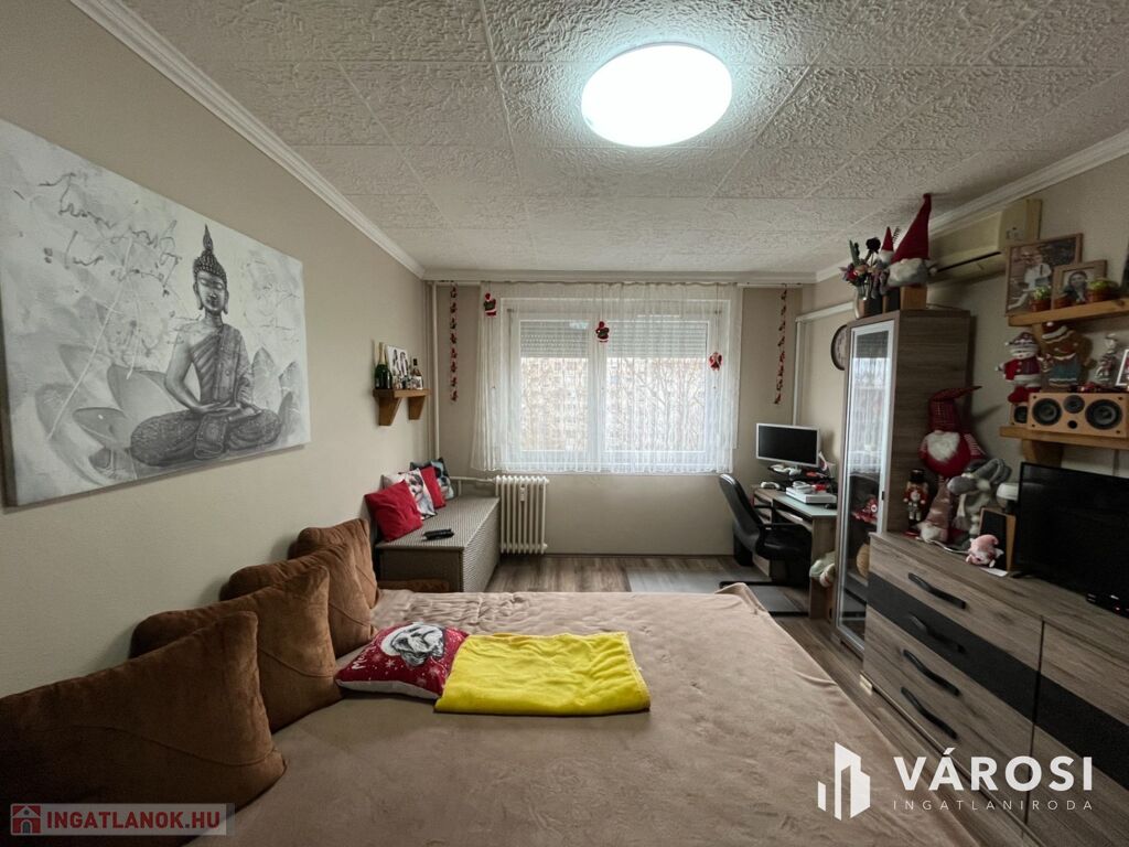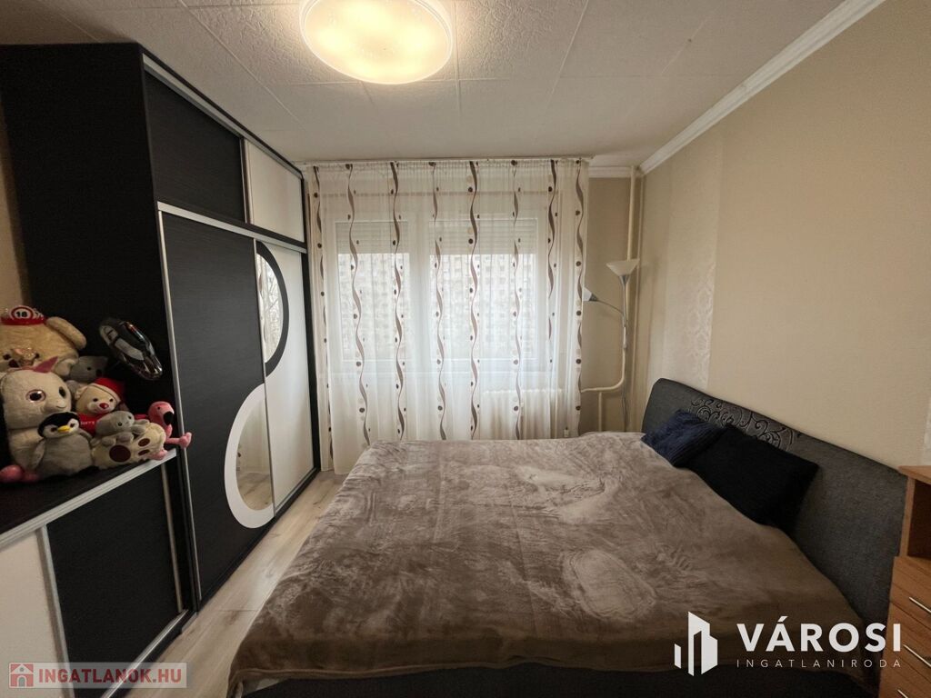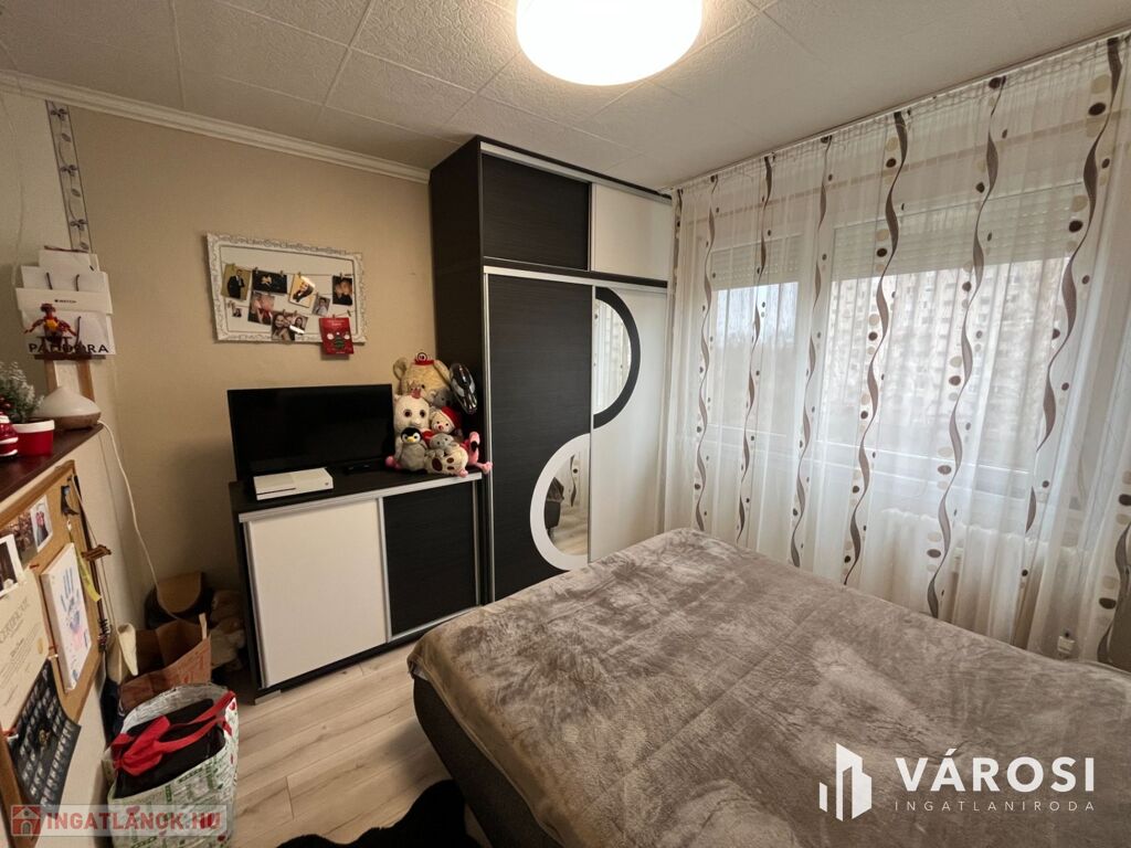 A lakás elosztása praktikus: 2 kényelmes szoba, külön fürdőszoba és WC biztosítja a lakók kényelmét. A redőnyözött ablakok mellett szúnyogháló is gondoskodik az otthon nyugalmáról, míg a beépített szekrények rengeteg tárolóhelyet kínálnak. A nagyméretű gardróbnak köszönhetően a nagyobb tárgyak elhelyezése sem okoz problémát.
