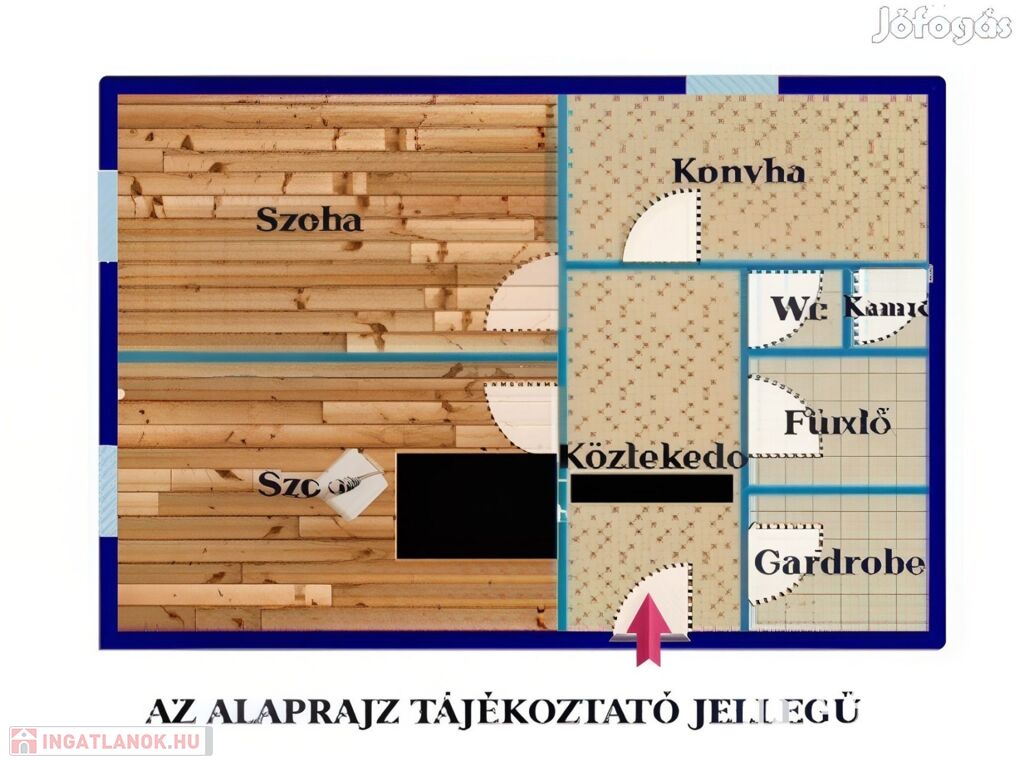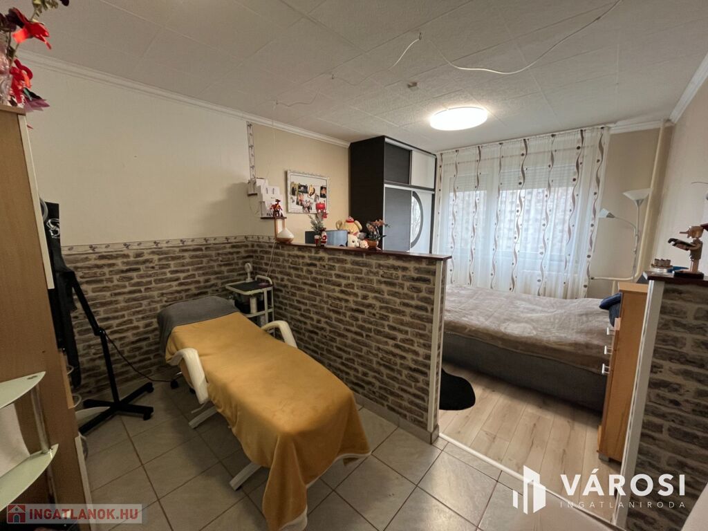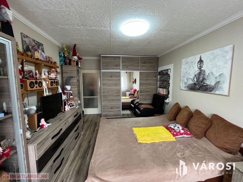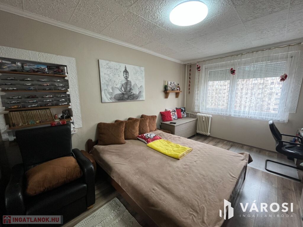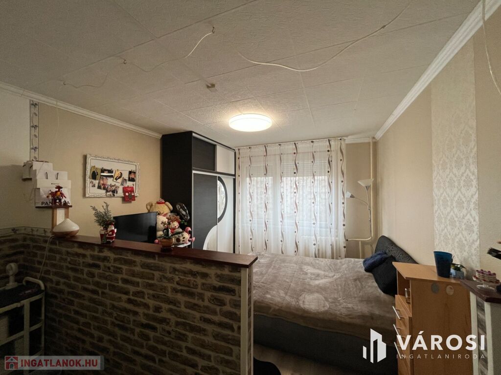 A lakás elosztása praktikus: 2 kényelmes szoba, külön fürdőszoba és WC biztosítja a lakók kényelmét. A redőnyözött ablakok mellett szúnyogháló is gondoskodik az otthon nyugalmáról, míg a beépített szekrények rengeteg tárolóhelyet kínálnak. A nagyméretű gardróbnak köszönhetően a nagyobb tárgyak elhelyezése sem okoz problémát.