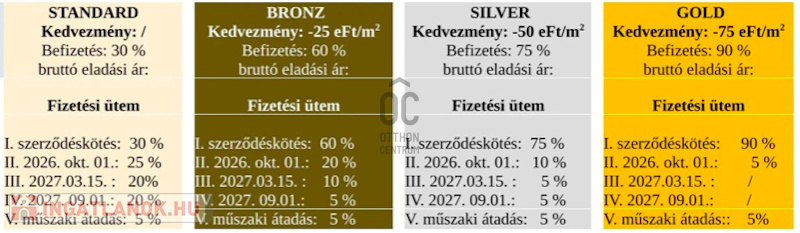 Standard felszereltségű lakásokra-hitelmentes konstrukció esetén, GOLD fizetési konstrukcióval ! 1.324.000 Ft/nm