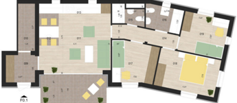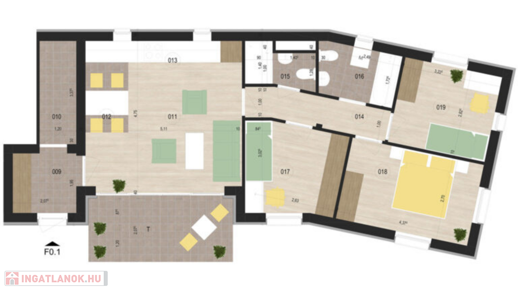 -Elrendezés: 3 szoba + amerikai konyhás nappali, külön fürdőszoba és külön WC.