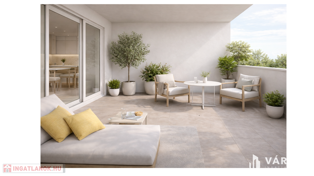 -Kültér: Közel 9 m²-es, saját terasz a reggeli kávézáshoz.