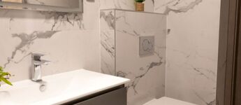 - mennyezeti hűtés-fűtés hőszivattyúval, fürdőben padlófűtés