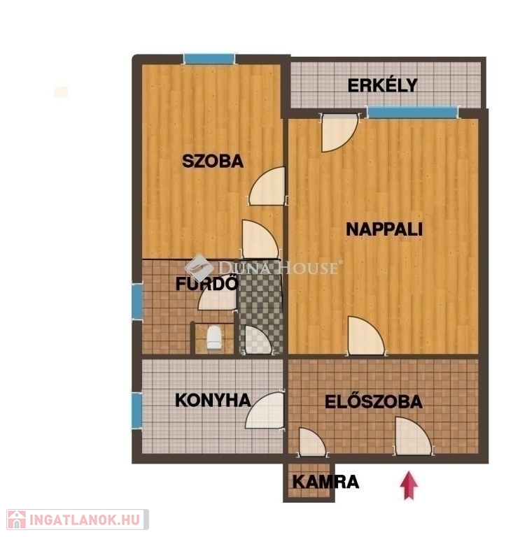 A nappaliból egy 4 m2-es erkély nyílik, ami keleti irányba tájolt.