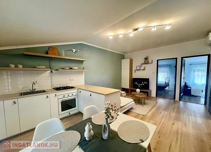 • Világos amerikai konyhás nappali + 2 külön nyíló, kényelmes hálószoba.