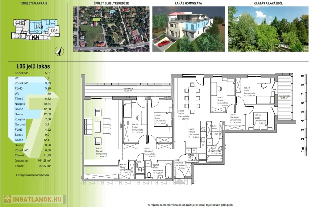-I.06 lakás: 164,28 m²; terasz: 20,27 m²; ár: 172.300.000.- Ft.