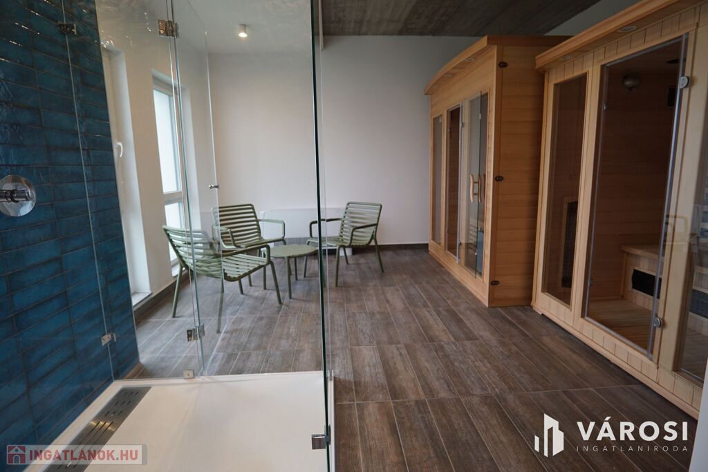 FONTOS: A Társasház felső szintjén található teljes Wellness részleg használatát is tartalmazza, a hirdetési ár!!! (Ezen opció külön megvásárolható volt csak is kizárólag a tulajdonosoknak.)