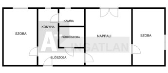 Elrendezését tekintve : dupla francia erkélyes nappali és kettő hálószoba , közlekedő , konyha- étkező , fürdőszoba wc-vel
