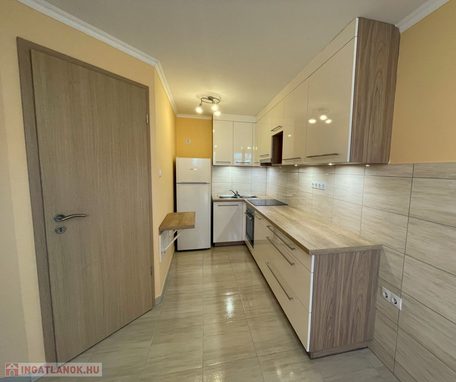 A konyha modern, esztétikus, gépesített: villany sütő, villany főzőlap, pára elszívó. Mosogatógép beépítésére a lehetőség adott.