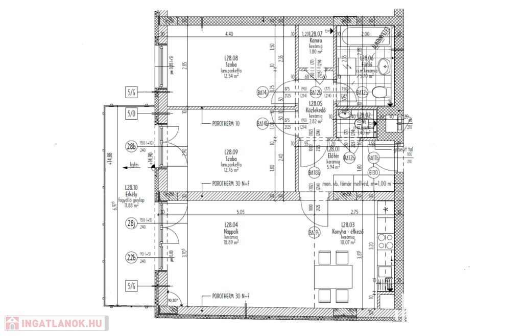 Az ingatlan 72 m² lakóterülettel rendelkezik, melyhez egy belső udvarra néző, fedett 12m²-es erkély kapcsolódik.