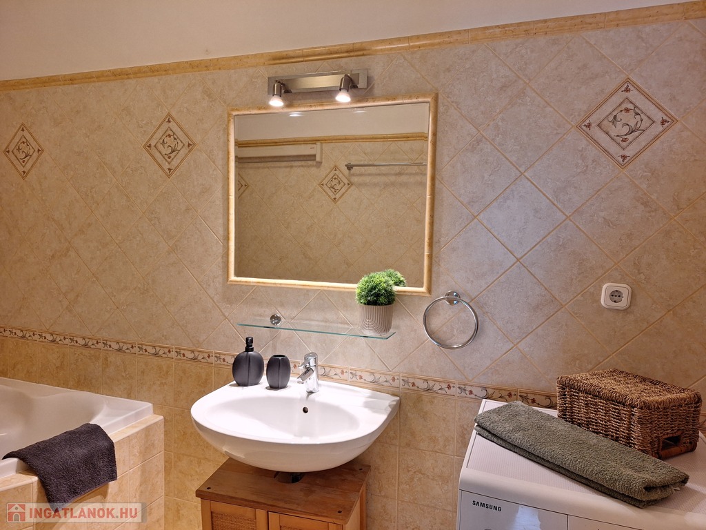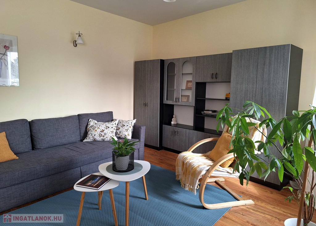 A lakás dél-keleti fekvésű, nagy ablakai a szépen parkosított udvarra néznek. A hálószobákat a reggeli napsütés éri, majd ráfordul az étkező-konyha-nappali együttesére. A lakást a meleg barátságos színek jellemzik. A fa konyhabútor beépített, szagelszívóval, mosogatógéppel, villanysütővel, gáz főzőlappal szerelt. A konyhát és a nappalit konyhasziget választja el egymástól. Bőven jut hely családi ebédeknek is, a 6 személyes asztal mellett. A hűtőszekrény jelenleg a kamrában kapott helyet.