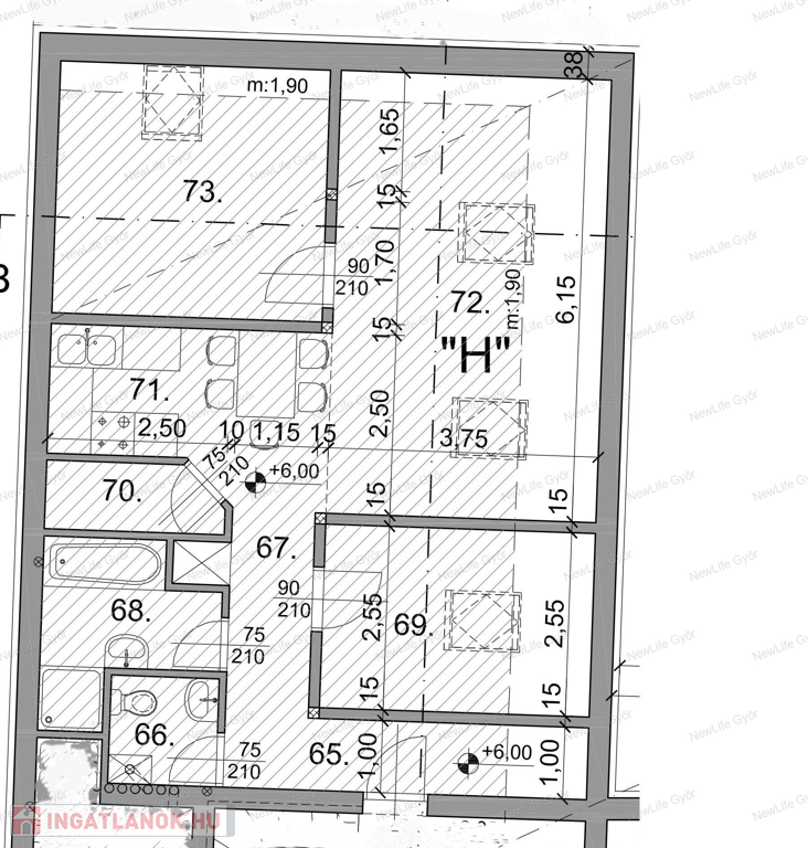 Győr-Szabadhegyen, a József Attila frekventált, központi részén, csendes belső udvaros környezetben, 9 lakásos társasházban rendkívüli jó adottságokkal rendelkező, 2. emeleti, bruttó 66,5 m2-es, nappali + 2 szobás lakás eladó.