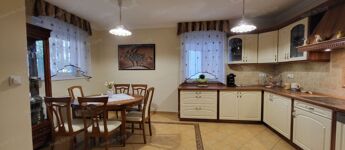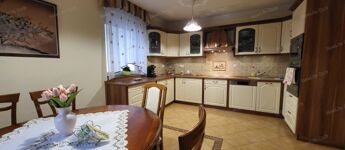 Teljesen felszerelt konyha: villanyfőzőlap, páraelszívó, villanysütő, beépített mikrohullámú sütő, nagy mosogatógép