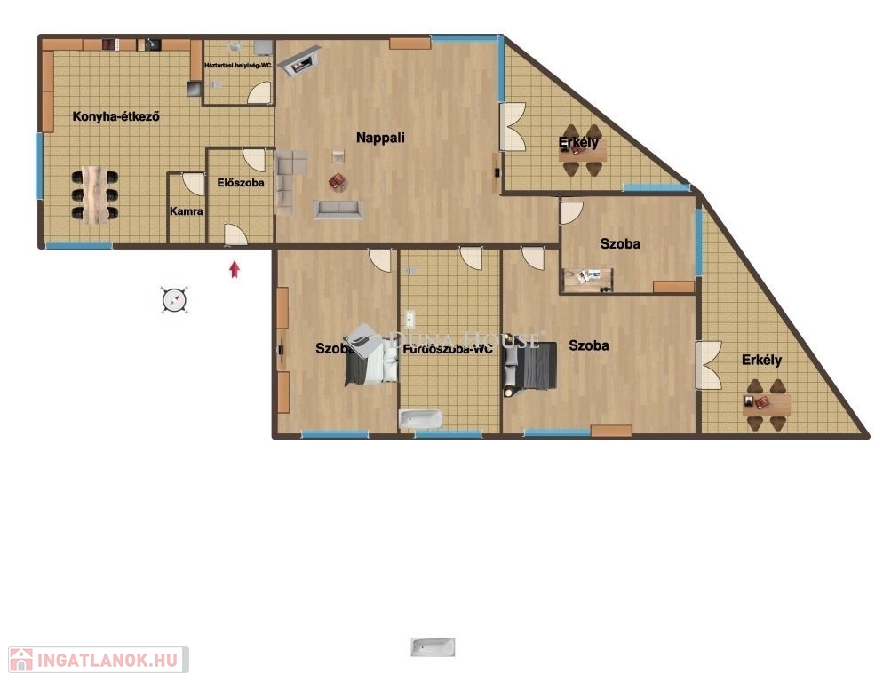 112 m2-es lakás elosztása: 3 szoba, nappali, konyha, étkező, fürdő WC-vel, külön WC, 2 erkély. A lakáshoz tartozik még egy saját tároló és egy utcai autóbeálló, valamint közös kerékpártároló is. A mélygarázsban található egy gépkocsi beálló, a lakáshoz megvásárolható. A gépkocsi beálló ára 6.000.000 Ft.A lakás gáz cirkófűtéssel rendelkezik, biztosítva ezzel a minden évszakban optimális hőmérsékletet. Belépve a lakásba, az első, ami szembeötlő, az a bőséges természetes fény, mely minden helyiséget átjár. A kellemes mikroklíma a gáz cirkó fűtésrendszernek köszönhető, ami gazdaságos és kényelmes megoldást nyújt a fűtésre. Az épület, mely 2002-ben került felépítésre, tégla szerkezetének köszönhetően rendkívül stabil és hőszigetelési szempontból előnyös. A lakás elosztása gondos tervezés eredménye, amely maximális helykihasználást tesz lehetővé anélkül, hogy zsúfoltnak vagy szűknek éreznénk a teret. A tágas nappali és a hálószobák ideális helyet biztosítanak a családi és baráti összejövetelekhez, valamint a nyugodt pihenéshez. Az ingatlan elhelyezkedése is kiváló, közel található a városközpont, iskolák, üzletek és zöld területek, ami kényelmes és praktikus mindennapokat tesz lehetővé. Az udvarban közös zöld terület, játszótér található. Akár az otthon keresésében van, akár befektetési célból vásárolna, ez a lakás tökéletes választás lehet.Ne hagyja ki ezt a ritkán adódó lehetőséget, hogy saját otthona legyen egy napfényes, megbízhatóan fűtött, kiváló állapotú és elhelyezkedésű téglalakásban.