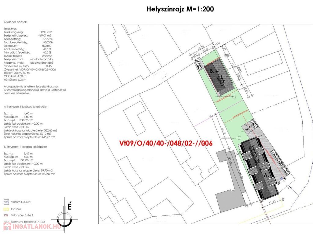 Az 1241 m2-es 2 utcafrontos telken külön bejárattal rendelkező, 5 lakás és egy üzlet, valamint a másik utcáról megközelíthető, külön bejáratú önálló családi ház kerül felépítésre.