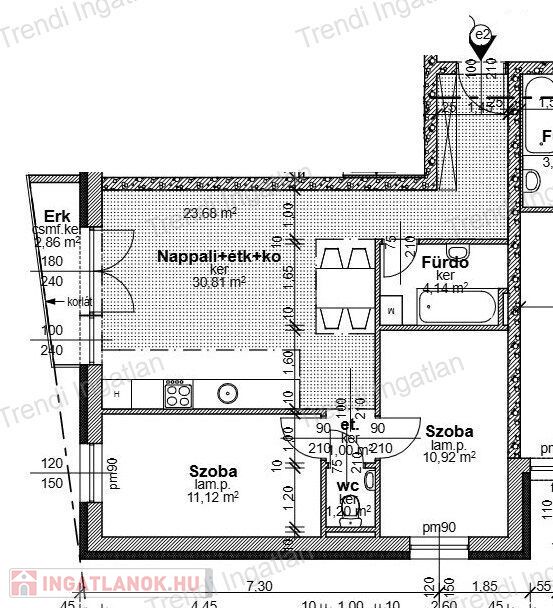 Az 1. emeleten található 59,20 nm-es ingatlanban amerikai konyhás nappali, 2 szoba, fürdőszoba, külön WC, közlekedő, előtér kerül kialakításra. A nappaliból 2,86 nm-es erkély nyílik.