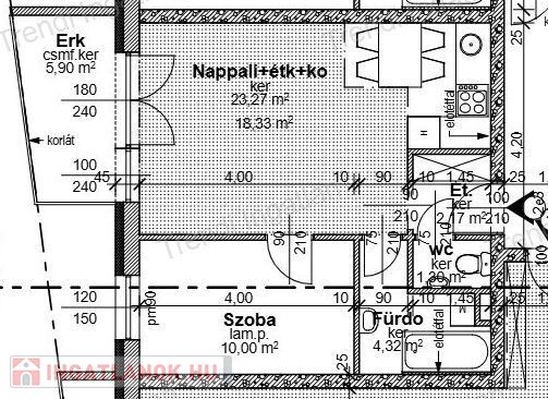 A 2. emeleten található 41,06 nm-es ingatlanban amerikai konyhás nappali, szoba, fürdőszoba, külön WC, közlekedő, előtér kerül kialakításra. A nappaliból 5,90 nm-es erkély nyílik.