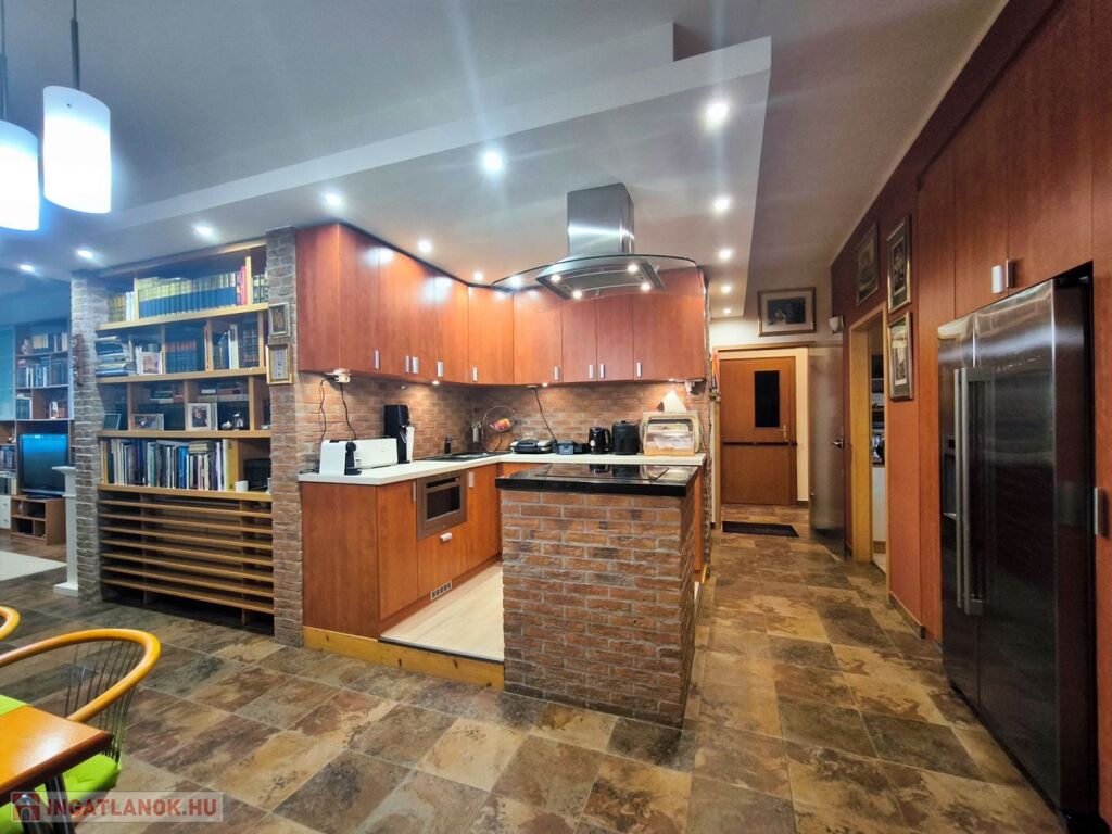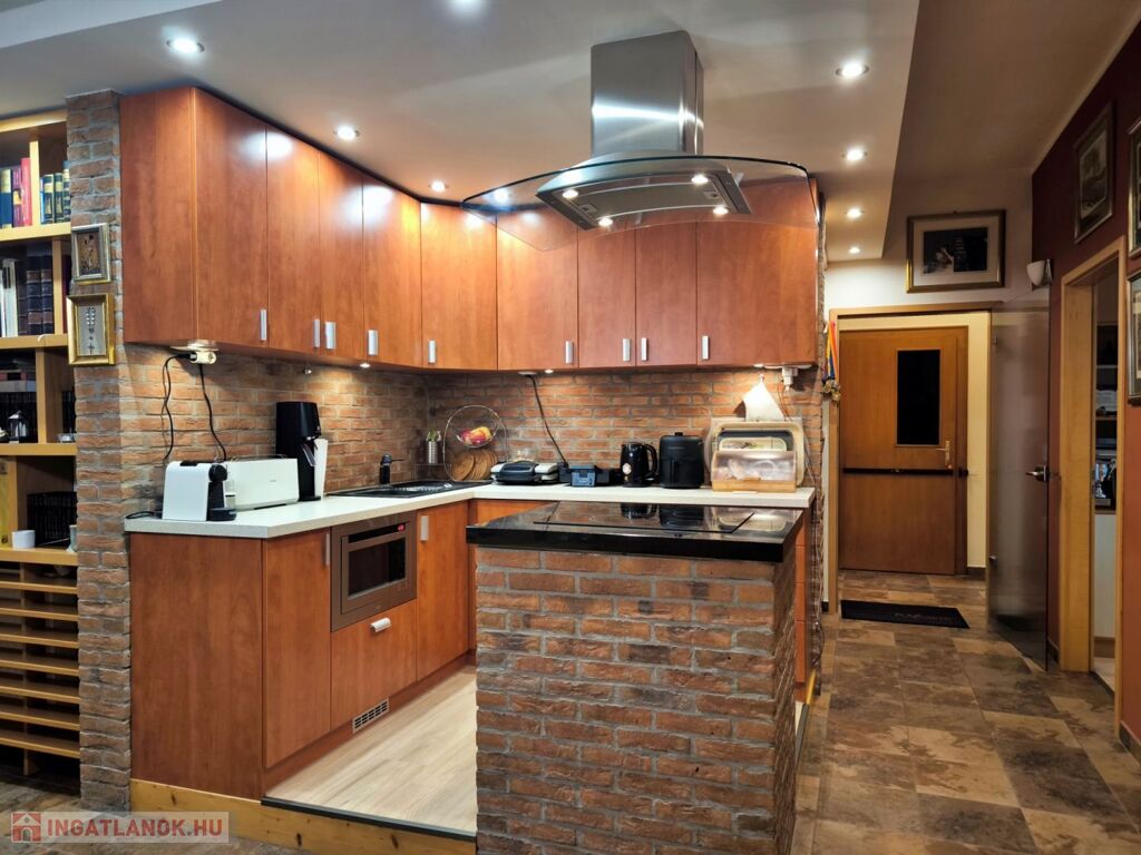 - modern konyhabútor beépített gépekkel, középen szigettel, ahol a kerámialap is elhelyezésre került